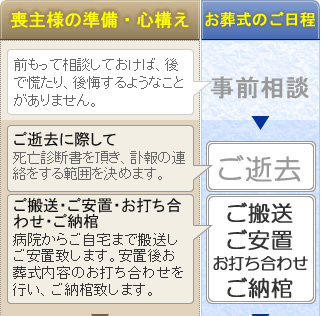 当社が提供するお葬式プランとは従来からある普通のお葬式のことで、一般葬とも呼ばれます。家族葬とは違い、様々な縁者や関係者の方々にご参列頂き、弔って頂きます。